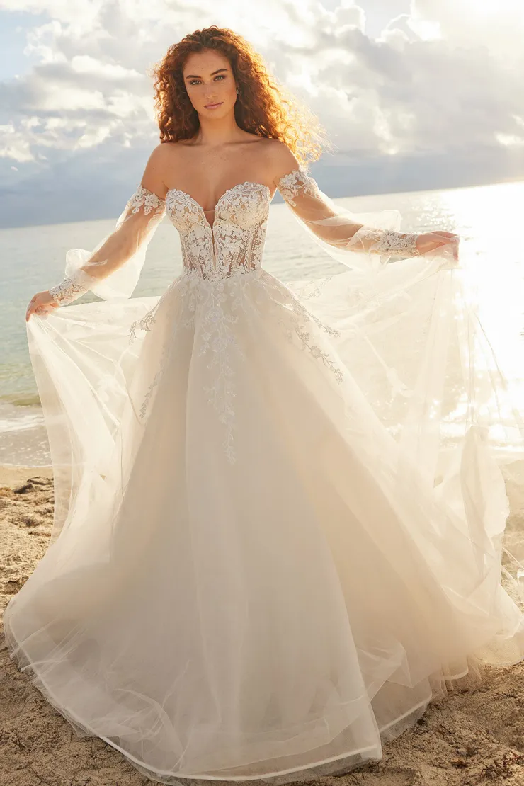 Robe de mariée pricesse, bustier, tulle, manches amovibles